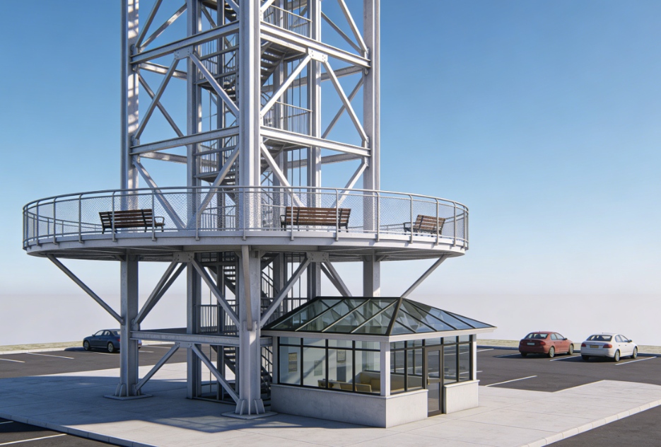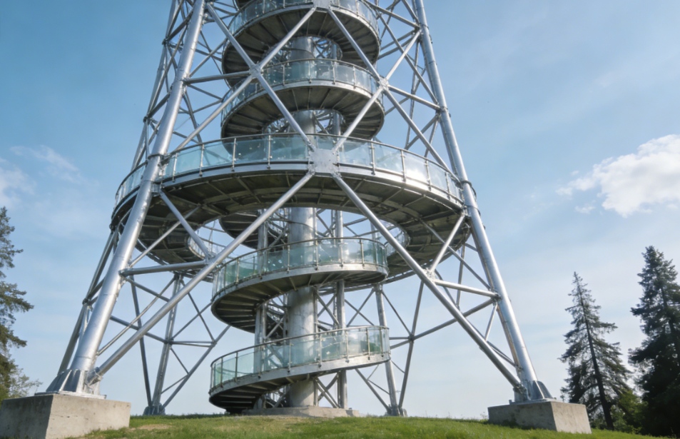 برج المراقبة/المناظر الطبيعية ذو الهيكل الفولاذي هو هيكل رأسي قائم بذاته، مصمم بشكل أساسي من الفولاذ، لتوفير نقاط مشاهدة عامة مرتفعة، أو لدعم معدات الاتصالات، أو ليكون معلمًا معماريًا مميزًا داخل الحدائق أو المناطق السياحية أو المناطق الحضرية. وهو يعمل كمنصة مشاهدة عملية وعنصر نحتي في آن واحد، وغالبًا ما يدمج السلالم والمصاعد ومنصات المراقبة لتقديم مناظر بانورامية للمناظر الطبيعية المحيطة أو المدينة.