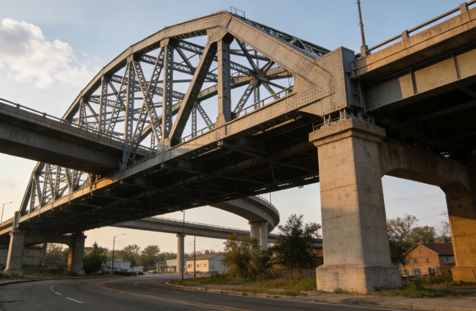 تركيب سريع للمنفعة العامة: الاستفادة مكونات فولاذية مسبقة الصنعيُتيح ذلك بناء أجزاء رئيسية من الجسر خارج الموقع. ثم يتركز العمل في الموقع على التجميع السريع - وغالبًا ما يتم استخدام الرافعات خلال فترات إغلاق محدودة لحركة المرور -مما يقلل بشكل كبير من الجدول الزمني للبناء وما يرتبط به من إغلاقات الطرق والتحويلات والتلوث الضوضائيمقارنة بالبدائل الخرسانية المصبوبة في الموقع.